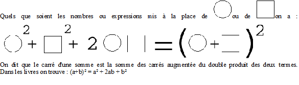 on calcule la somme de leurs carrés et on ajoute le double de leur produit