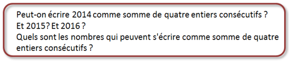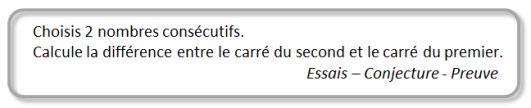 Pour faire travailler les élèves sur les preuves en algèbre, nous proposons aussi des preuves portant sur des propriétés arithmétiques. Cela nous permet de travailler sur l’expression algébrique de deux nombres entiers consécutifs, de nombres pairs ou impairs, de multiples de …, etc. Cette activité peut être proposée dès la classe de 5ème.Mise en oeuvre: Somme de trois nombres consécutifs