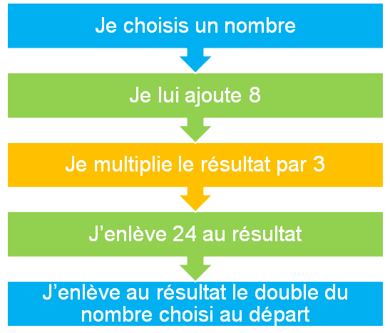 Dans un second temps, pour nécessiter l’utilisation de la lettre, il faut donc proposer des programmes où la solution n’est pas complètement accessible, comme dans celui-ci où le programme donne toujours le nombre de départ.